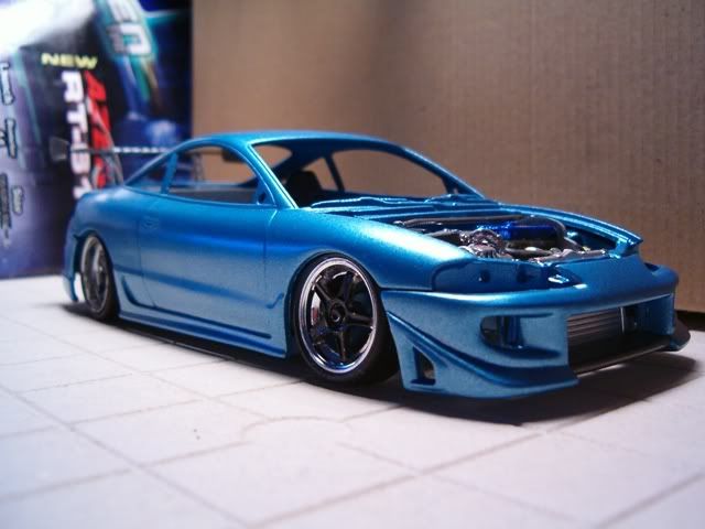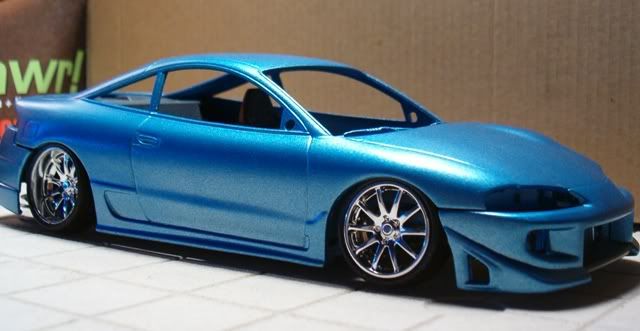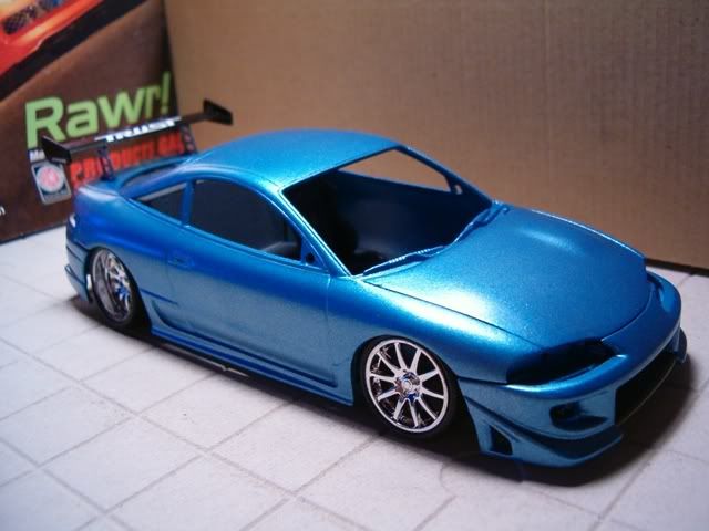 I added a GT style Mines wing. I will also repaint the centers on the wheels gunmetal. The Eclipse still needs to be cleared. I still debating to but graphics on it.