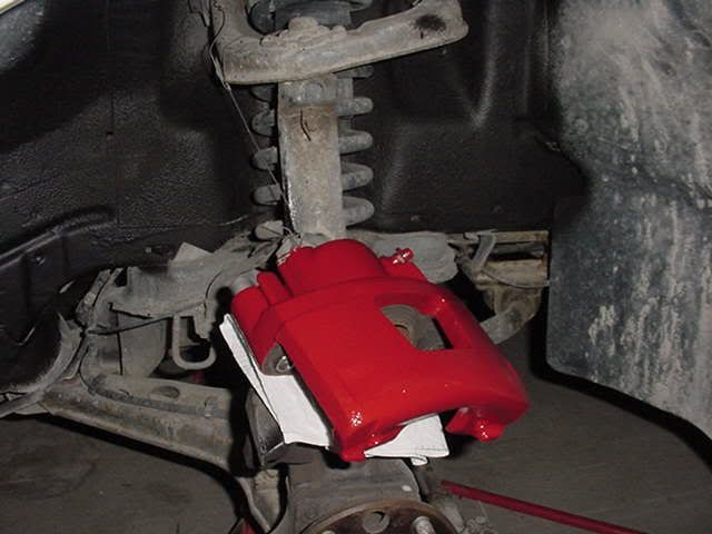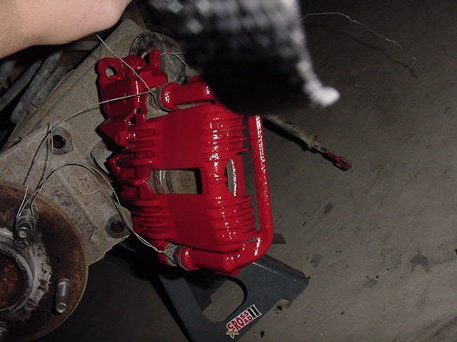 Well it was a rainy day and I figured what the hell I might as well work on the car.... so I painted my calipers.... and I think it came out really good.... but dang it takes FOREVER to paint those things....