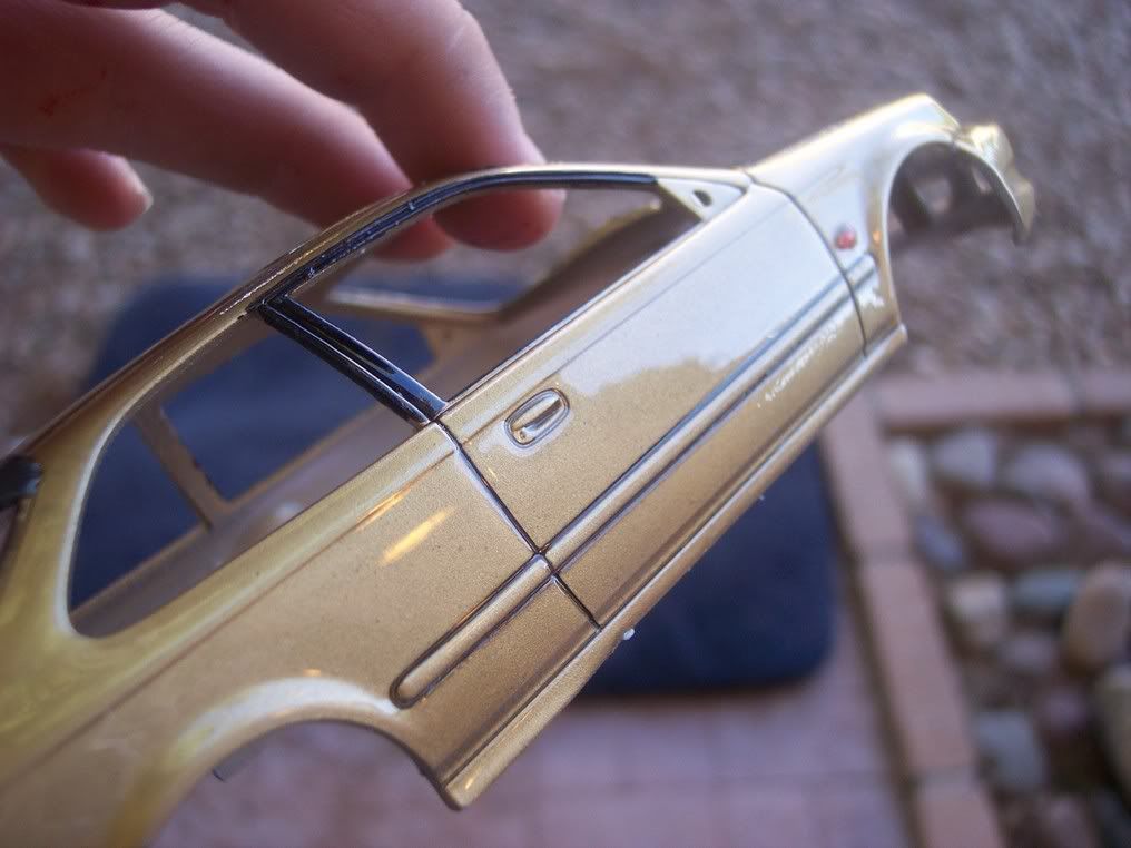 Also, buy a bottle of semi-gloss and/or flat clear coat so you can apply it over whatever color you want (after it dries). That will add alot of realism to your car as the interior and the window trim aren't meant to be shiny.