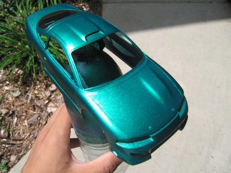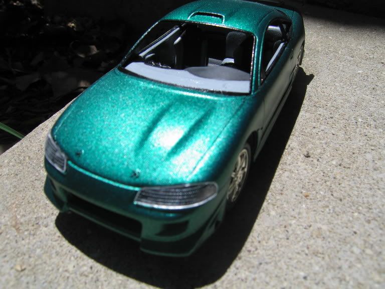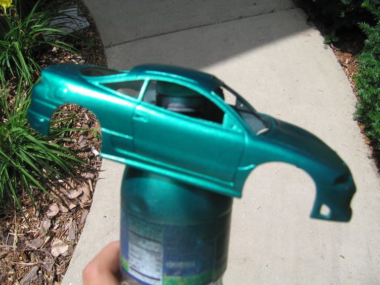 yup, i had an old progress thread all the way from last summer on the same model, but i just decided to make a new thread. i painted the car today and am almost finished with everything else. i primered it with Duplicolor grey, base color of some type of Plastikote silver/aluminum or whatever, and topped it off with some old Duplicolor Emerald Green i had lying around. here are the pics:
