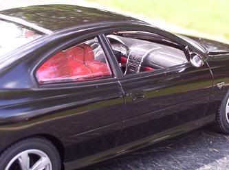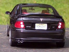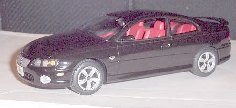 I seem to actually finish models when I don't make progress threads on them :p Stripped chrome off wheels, painted gloss aluminum, and centers black with red pontiac emblem..ye right. Made liscense plates on that website..forget at the moment. Do they look too big? Too small? Good size? Repainted grille. Are the "GTO" scripts on the seats suposed to be black? Sorry for th crappy pix:-/