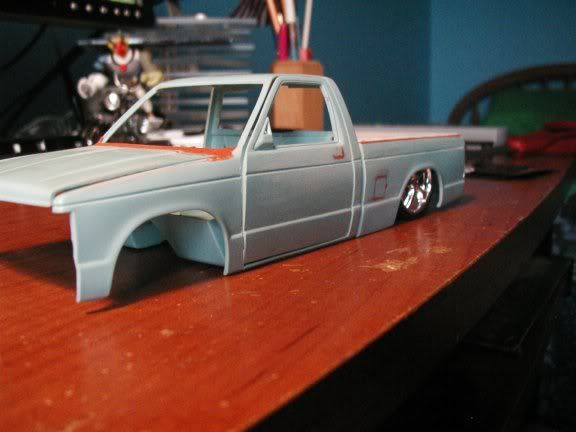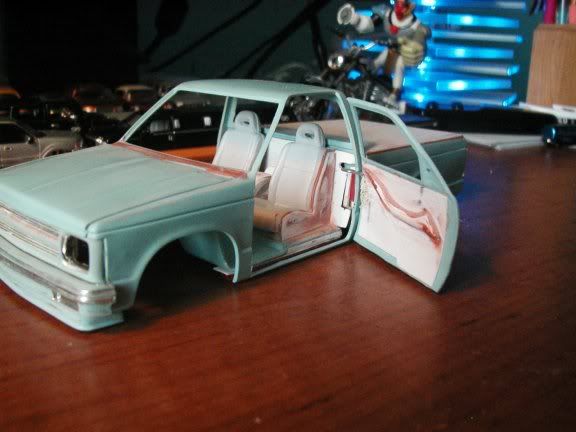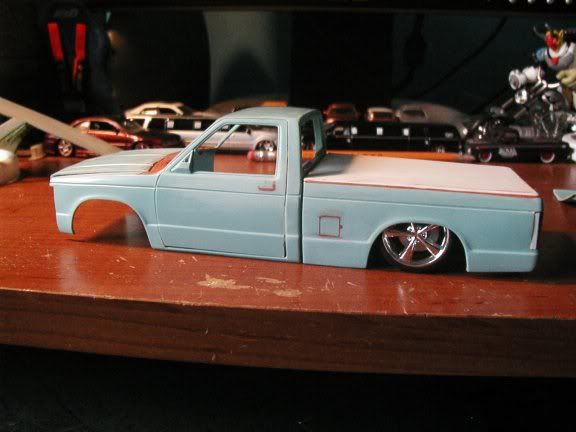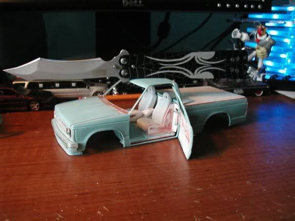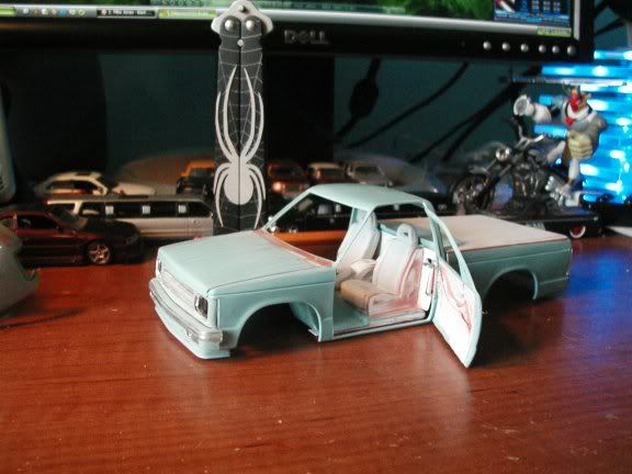Hello everyone, I'm back with a new project, a late 80s s10. I purchased the body components and interior bucket from AF's own Bob Bauman, so thanks Bob :sunglasse As far as plans go for this, I am deciding as I go for the most part. Originally i was going to build a curbside kit with the stock interior and shaved body, but now i am going to do suicide (reverse opening) doors, motor detail, custom fram, shaving the whole truck including taillights (as originally i wasn't going to) custom console, dash accents and slight modification, slamming it on 20 inch vortexs from hoppin hydros, and custom decal designs I made in photoshop cs. I plan on printing these using the testors decal kit for making waterslides. Now that you read this long paragraph, I'm sure you want to see some pictures. Comments and suggestions are more then welcome.