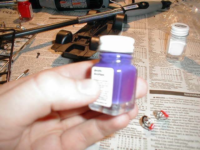 im leaning towards the first kit a lot. I use a testors airbrush, and the paint is just called purple on the bottle. Also the spokes on my wheels are being painted gold right now actualy.