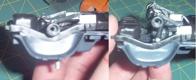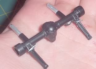As you can see. Drilled out the "shocks", inserted aluminum tube, and extended it. I hope I can have this lifted. That was the main plan.