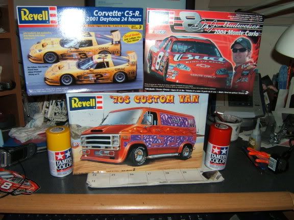 Well I gonna paint de C5 with Chrome Yellow,( I Love that color is hot), obviously the Earnhardt Jr in Bright Red (that model bring the driver figure), but if you people help with the color of the Van, because I don't have any idea the color I gonna paint.