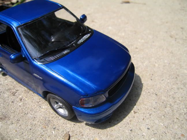 Not a big fan of pick up trucks, but you made a good effort with it... There is a bit of orange peel, around the lights, but it's nice colour... Trim work looks good, does need a front grill though, just to finish if off..