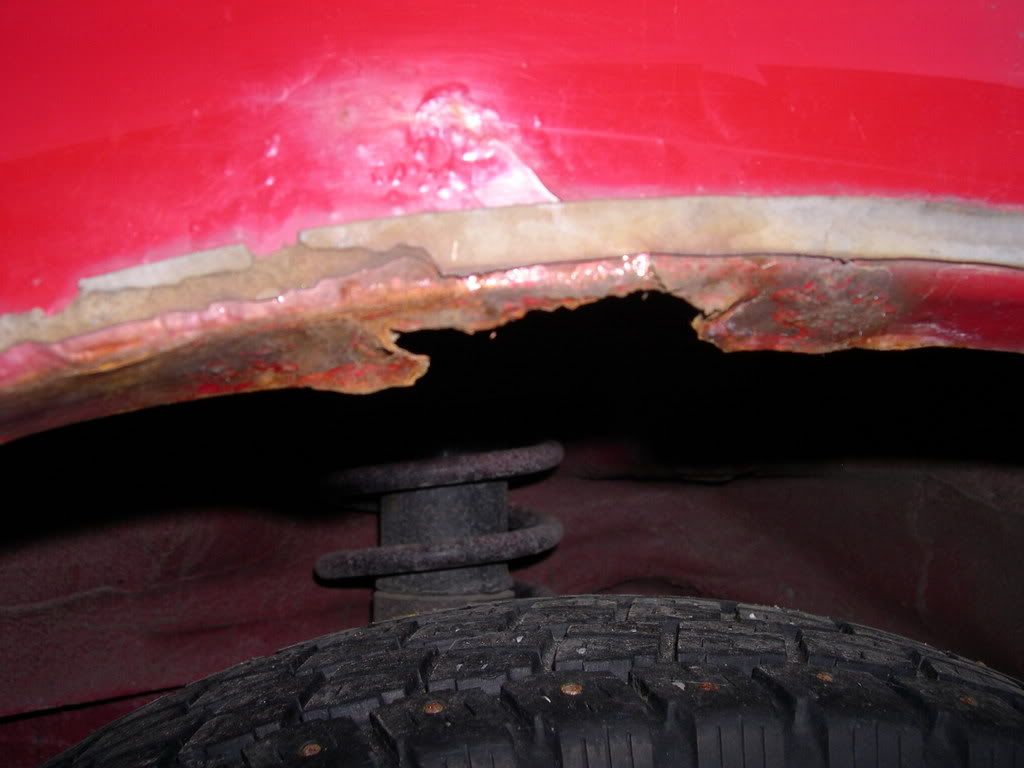The plan is to buy one of those panels on e-bay or http://www.rustrepair.com/, and then cut out the old and weld in the new. And I'd love to just prep and paint that part red, but the rest of the car needs paint bad. The upper part where the rear side window and hatch meet is peeling really bad, because the car was repainted before I got the car. And the roof is a complete mess; right where the roof meets the windshield is completely faded, as well as some minor chips and dings that have started to rust (one on the door and a couple on the hood). And I highly doubt I'd be able to match the panel to the rest of the car because it's Milano Red, and has the tinted clear coat. If I have time today or tomorrow I'll take some pics and show you what I mean, it will definently give you a better idea of what I'm talking about than my horrible description. But I do understand what you're saying. It will cost a lot more to have the entire car color changed; in both time and $. But the rest of the car is mint. If it's on the lift and I take the wheels off, you could literally eat off the inner wheel wells/ suspension.