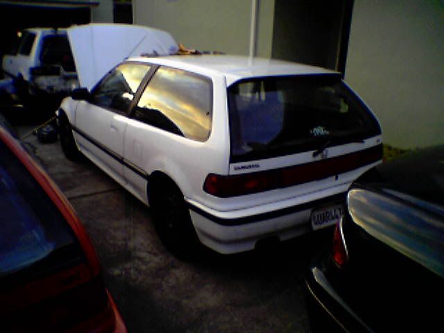 I havent been on for a while buts lots have happen since.I gutted the salvaged Crx i had and kept all kinds of parts and finally got it towed to salvaged yard. so much for rex.The other day i bought a Jdm bumper off some kid (for my front end conversion) and he asked me if i knew anyone who was looking for a 90 HB SI thats he needs to get rid of. he says 300. so after negotiating with him i talked him down to $100. so me and my friend split it $50 each and he is keeping all interior which is almost mint and im getting Jdm fenders it has,Rear discs,both doors,clean hatch,Pm6 ecu and some brand new alpine mids it had :biggrin:. Not bad for $50. The reason we are gutting this hatch as well is it got in accident in front and previos owner re-welded mount all crooked and fucked up all kinds of shit on frame. So i have got all kinds of Parts. Let me know if you guys need anything and ill see what i have.