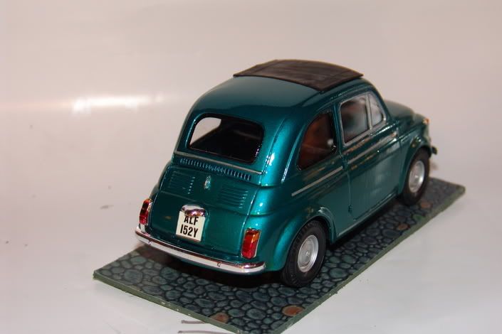 Was an old Gunze kit which was hidden away in the back of the Hobby Shop. It was very basic (no engine or interior detail or steerable front wheels!). I've got the Tamiya 500F and 659SS. Those are a bit more detailed so I'm looking forward to that. Uninen, I used alcohol thinners. The Tamiya one is quite pricey and wasn't as effective as the local superrmarket variety i tried. I mixed about 3 parts paint to 7 parts thinners. I forget how many countless coats I sprayed but it was worth it in the end. I'm not familiar with boyd's acrylics. I only use tamiya enamels. I would think you would have to thin that with water but I have never tried an acrylic so I may be wrong.