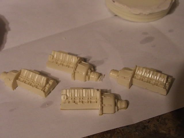 I've poured 4 engine halves so far!! lol. As you can see in the picture, I used WAY too much mold compound..I should have planned my molds a little better. Lessons learned though.