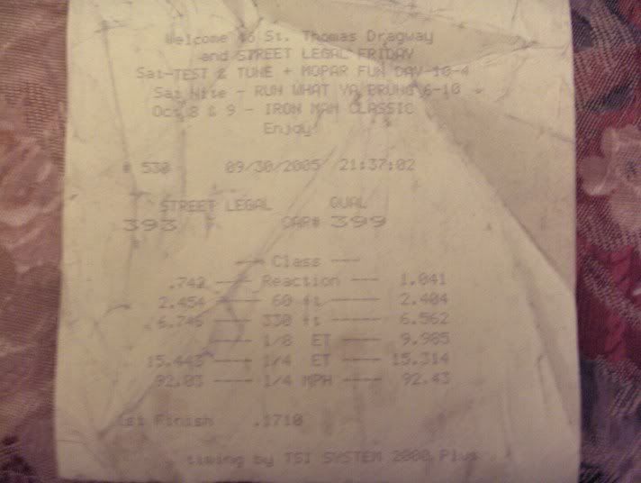 This really isn't a street race but it "could" have been clasified as one. So the other night I finally get the chance to go to the darg strip, my first time ever. Started off the night about a full second off what I'm suppose to be running, by the end of the night I got to about 2/10ths of a second off.