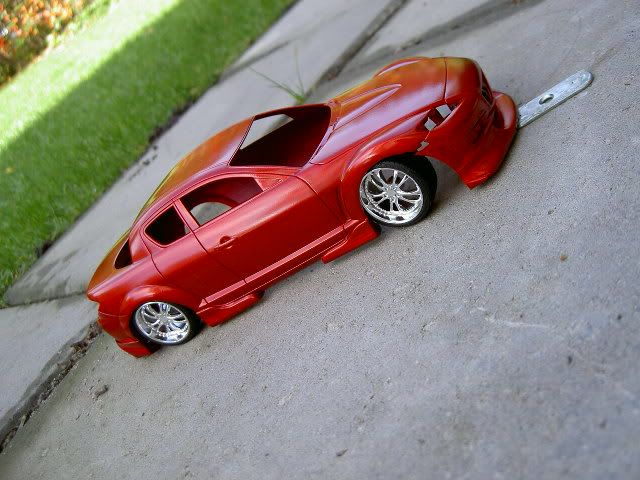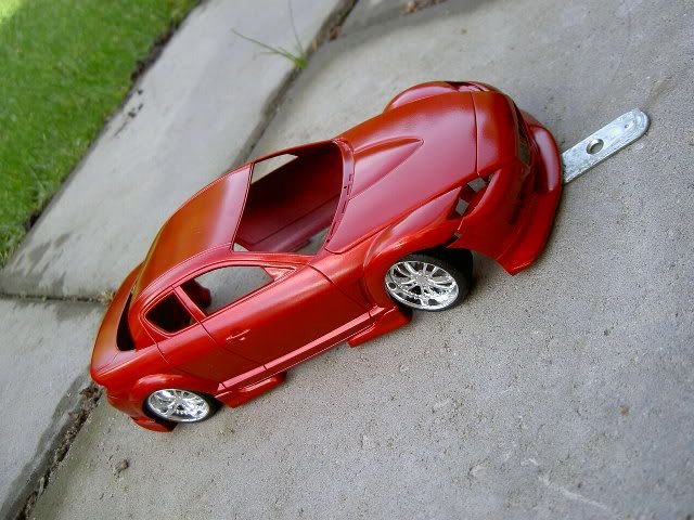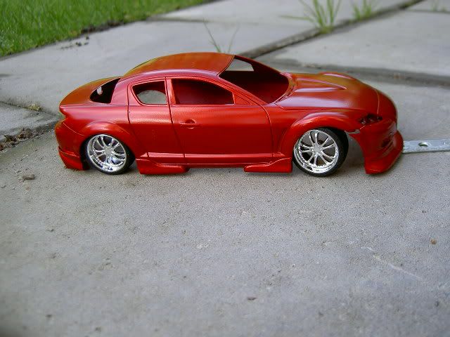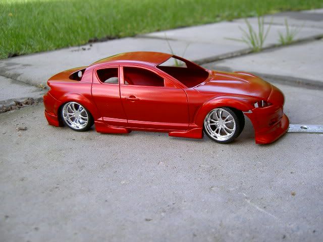 Heres a couple of pics of a project im hoping to complete. Fujimi Veilside Mazda RX-8. Silver basecoat then TS-74 (clear red) wheels seen are Bersaglios, pretty certain they're staying.