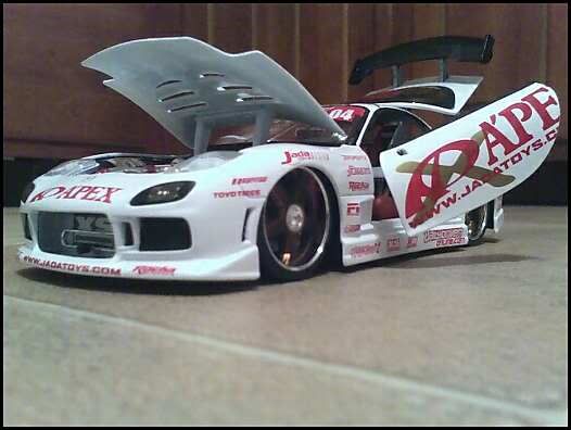 i picked up a jadatoys rx-7 today for about 25 dollars and all i could really think to do to it was to convert the doors to lambo style. that's all the mods it has right now. if you would like to suggest any other mods, see more pictures, or comment on my work then please do!