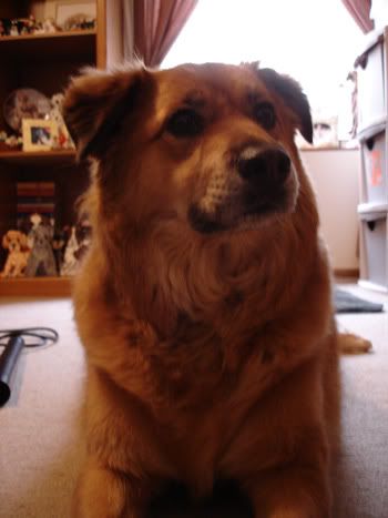 maggie is the younger one, and also the chill one. you will ALWAYS find her either attached to my mom at the hip (hand that feeds, remember?), or under the couch in the front room sleeping. it's always the same couch too, so we call it her bedroom. she's the fat lazy dog who pretends to be dumb, but she's actually pretty clever. when we first got her, she was just a puppy. when we would all leave in the morning, we'd block her into the kitchen so that she wouldn't go around peeing all over the house. every single day, we would come home to maggie greeting us at the front door. she always seemed to find a way out. we tried child safety gates (she chewed through them), plywood (knocked it over), plywood held in place with a couple of chairs (somehow managed to move the entire apparatus), and some that i can't even remember. it was so amazing that we nearly called her Houdini instead.