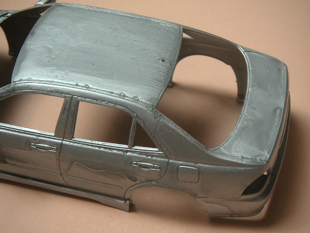Call me crazy but it looks somehow cool to me... i mean it won't look good when the car will be finished , but if i were doing something like an autoshop diorama or so i'll put it (the body alone) in the backyard... i'll maybe also burn the hood with a lighter a little , to pretend the engine burned and blown up...