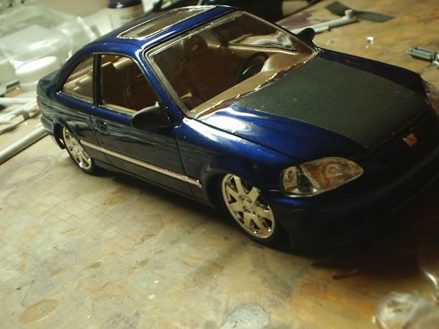 Looks good, I like the paint and the painted carbon hood. Personally I would have left the chrome trim piece off, but that's just me... Did you Future the windshield or something? I can barely even tell that it is there, looks good, no scratches!.