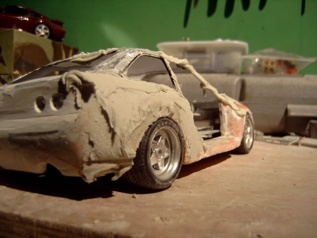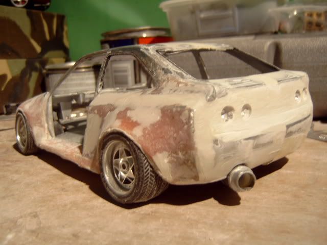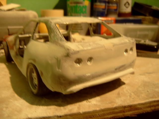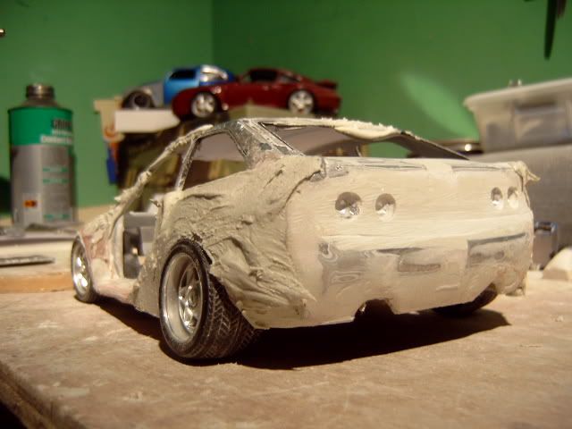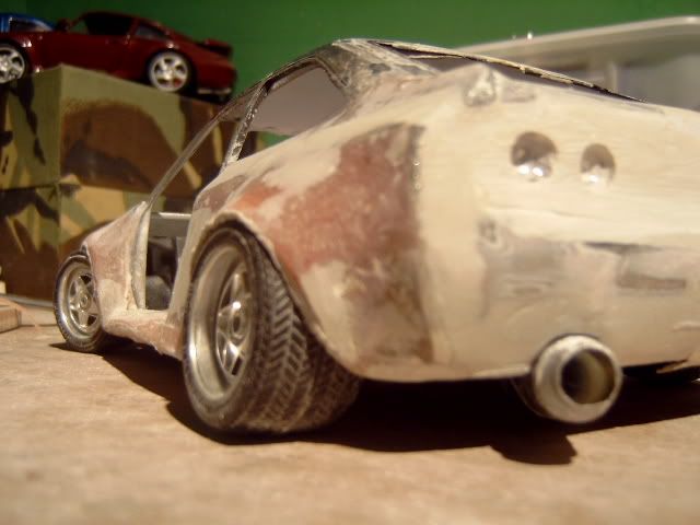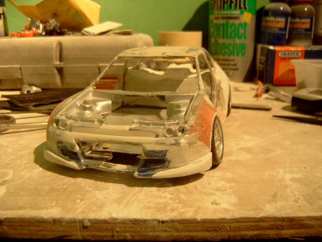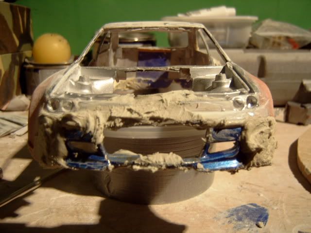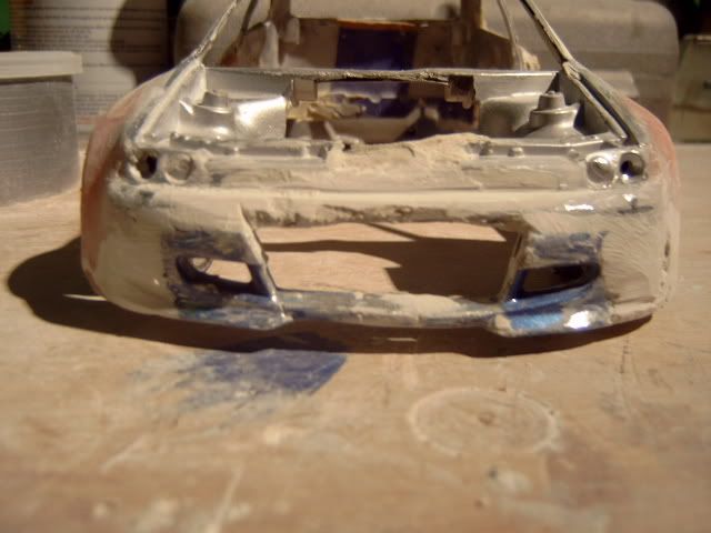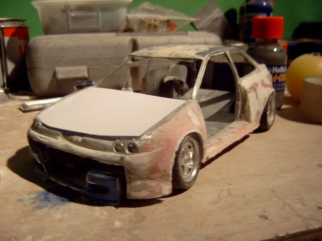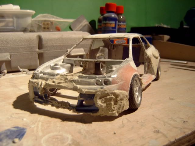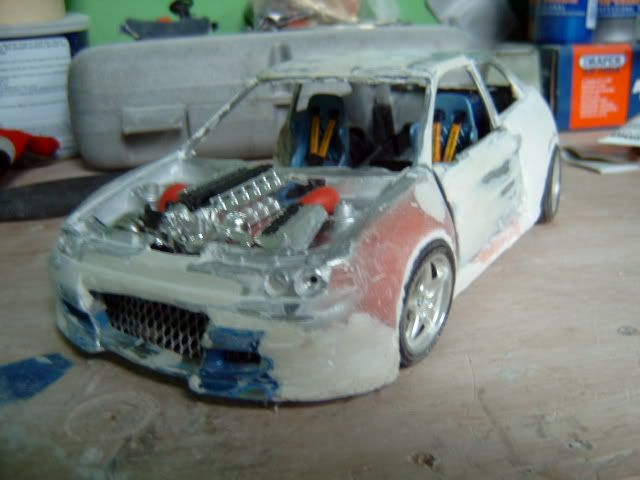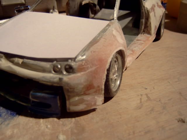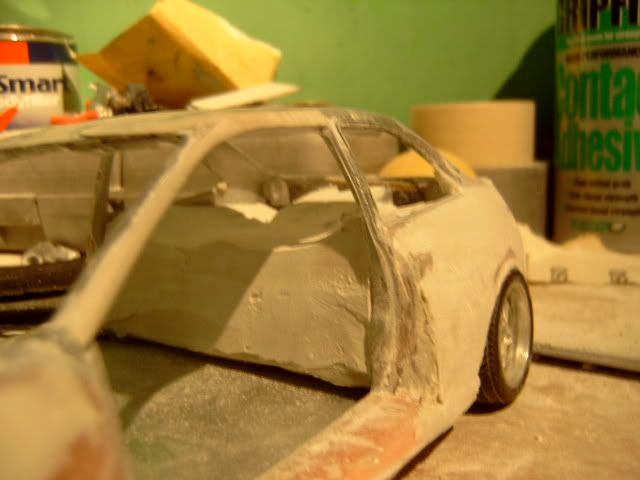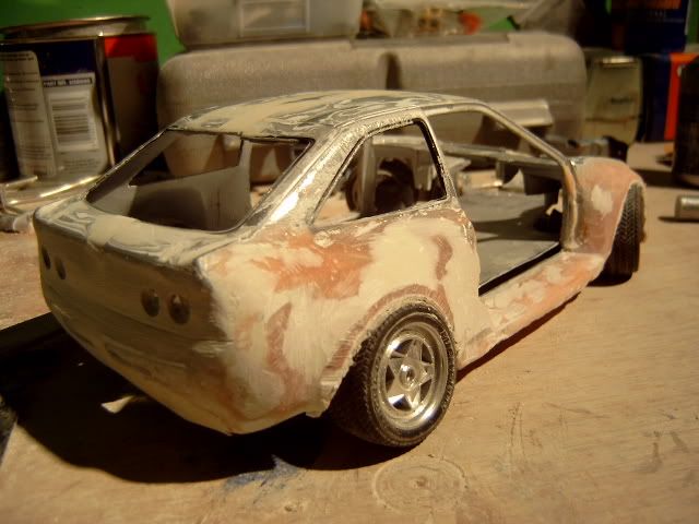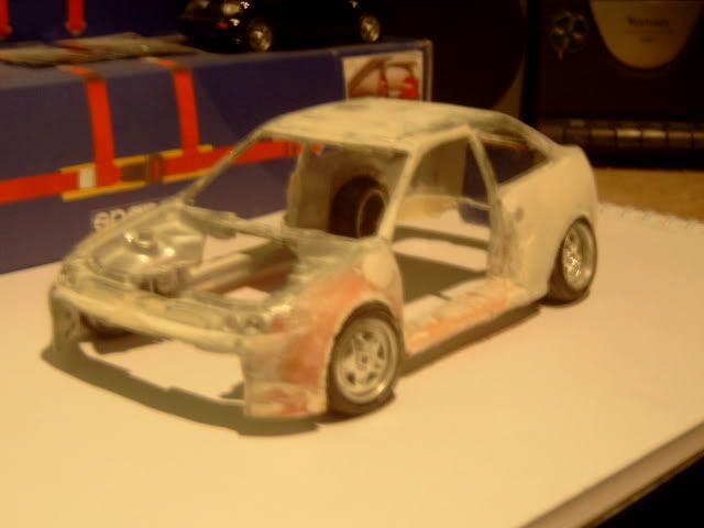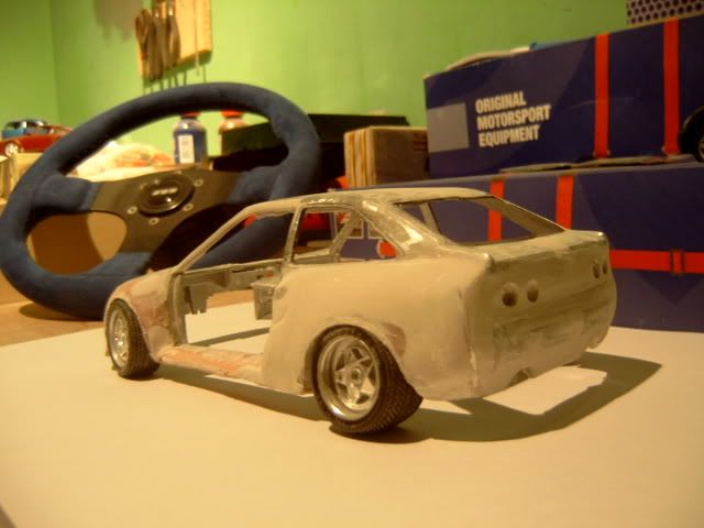 i wasnt a fan of this project before i thought the wide body was to big and looked a bit stupid but its startin to look good you must be pretty good to be able to use fibreglass on such a small model and when i heard you were goin to widen the actual car i thought it would look silly but youve done a good job but one question why widen the car? anyway great work keep it up