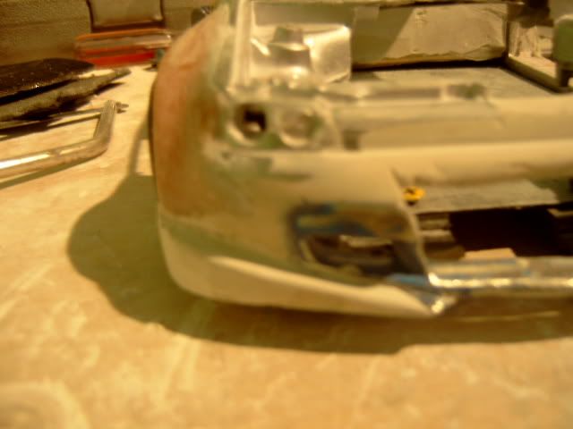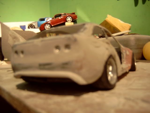 now looking back at the ferrari front end, you could've left the hood long and then put the bumper infront of it like you did in the test photos and you could've put the ferrari headlights in as well. then on the front fenders you could mold it around the side of the front bumper. just a suggestion.
