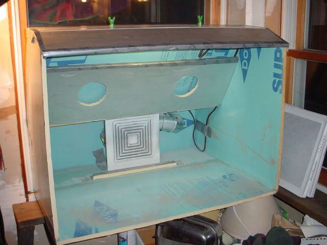 Basically the same setup as mine, except I used a PC Case fan, and my booth is just one of those big-ass blue tupperware containers you get at wal mart for storing stuff.