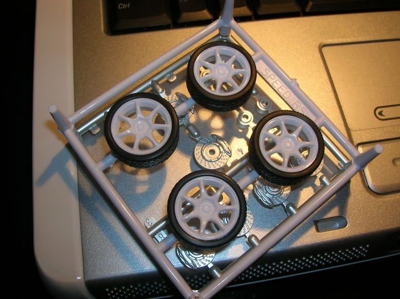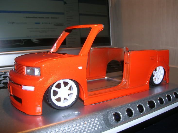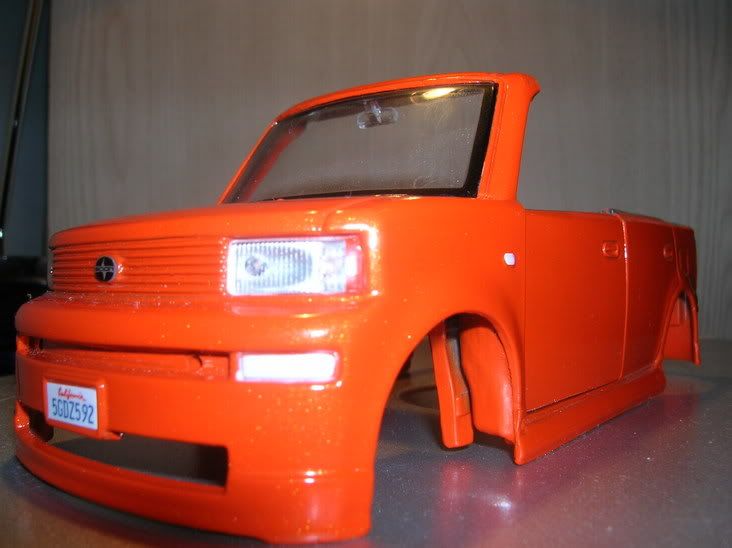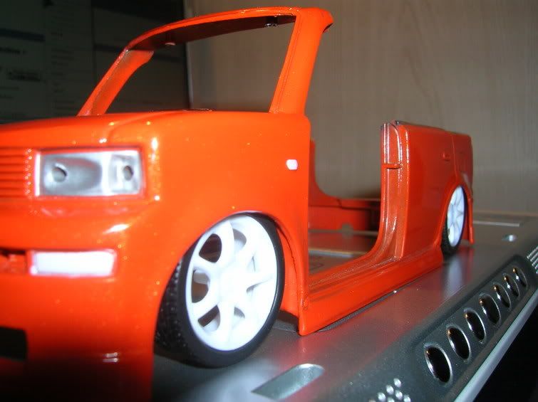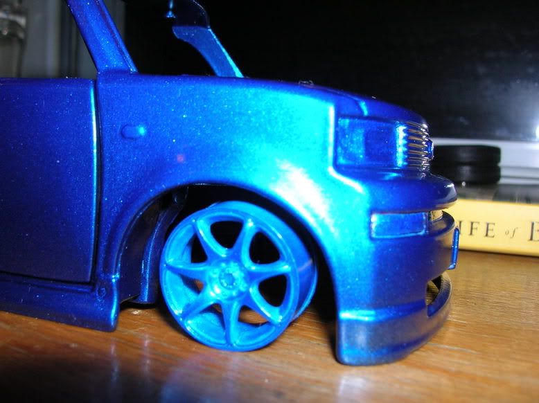 thx thx the clear is being put on today ... as for the rims once again it is a very very tight space in the wheel wells. not any other rim that i had would fit. all DUBs would not fit, so i had to go to my hobby store, anyway here is the pic with tires and rims