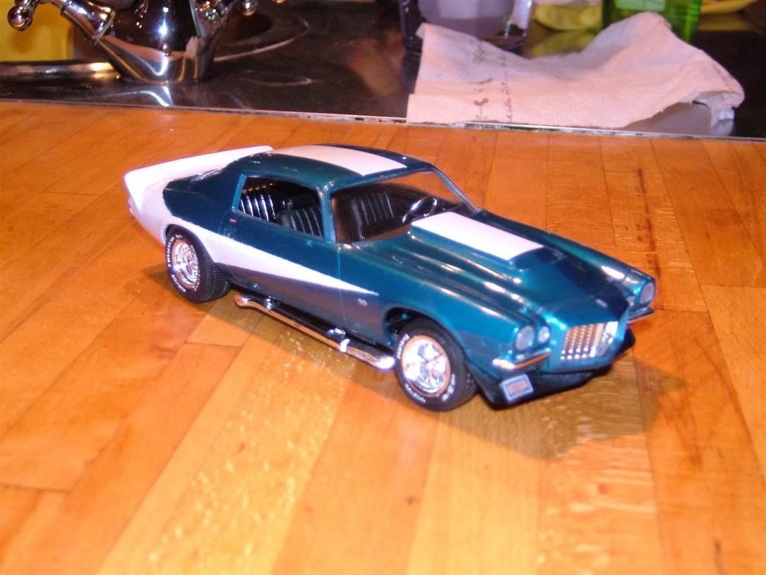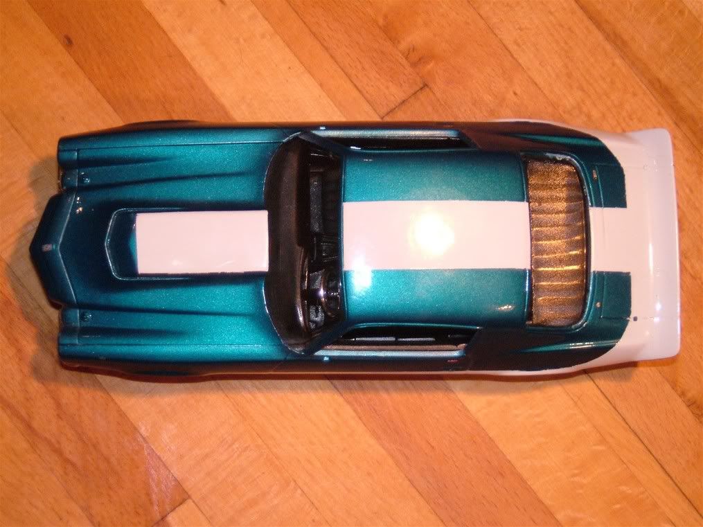 I bought this two years ago while in Florida, and thought that it was time that I built it, so here are the finished pics, hope you like it, some pointers on how to improve it would be nice. Its the first model I have done custom paintwork on, which I found a bit of a pain. The white was all masked off and sprayed after the mettalic. I haven't got around to waxing it or polishing it yet, but I thought it still looked pretty good.