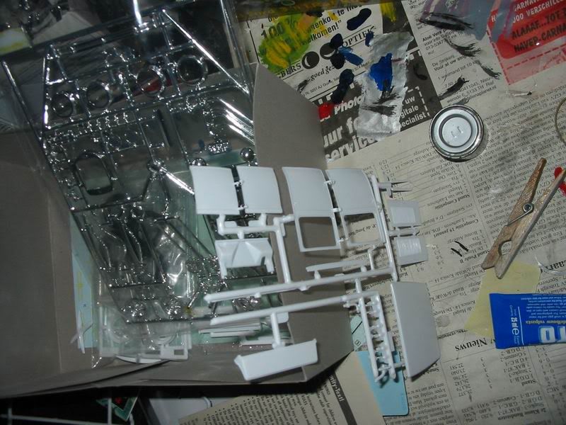Another box of parts, a Dan Fink Speedwagon kit missing it's tires, this will donate it's engine and radiator. Maybe some more parts like the firewall.