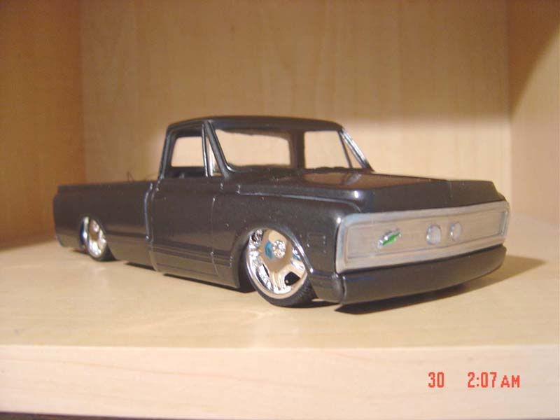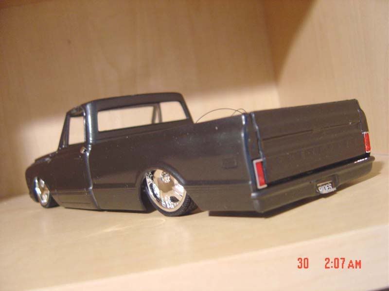 Yes the rear frame and rear end "except pumpkin" is all scratch built from plastic tubing... The front wheels are cut also, with the suspesion only looking good from the bottom i didn't wanna have to make all my own parts so it would look good with no wheel wells in there... Your gonna run into a problem laying rocker with the stock frame when you put the motor in. So i left out the whole frame and made my own motor mounts to raise it up a little bit so i could get the truck lowered more.. if you got any other questions just ask me, more than happy to give you suggestions. BTW the bags are made from aluminum tubing and O-rings,, pretty accurate i think..