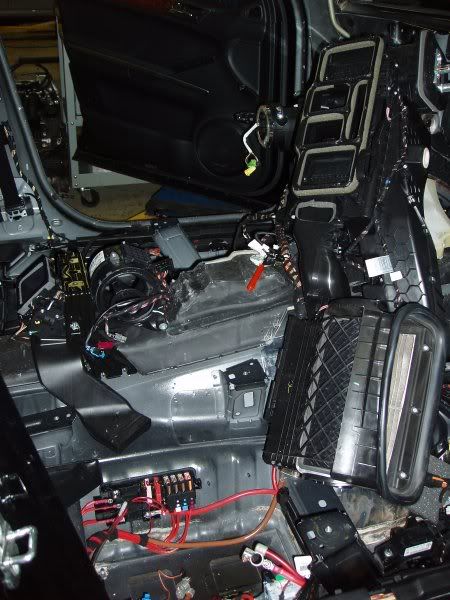 2006 Mercedes ML350.....5500 miles. The car came in flooded which fried all the control modules on the floor. The car sat outside for over a month because all the parts were back-ordered from Germany (go figure considering where the car is assembled :rolleyes: ). We concluded that the leak was coming from the firewall area so the dash and heater housing (that big black thing in the middle) had to come out. And after all that we still have a definitive answer as to where the leak is. :disappoin