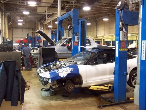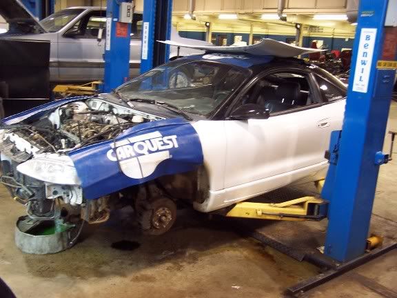 Basically I'm redoing the top end of my motor. 1g intake manifold, 1g throttle body, sending my 2g head to my buddy to get port matched and polished, small 16g, 550cc injectors, finishing my exhause(3"turbo back no cat), possibly getting a maft, looking at a tubular manifold, FMIC, I think thats it but there maybe a few more little things. Anway here are some pics of my progress and a few of my schools shop.
