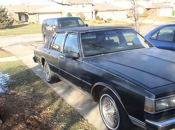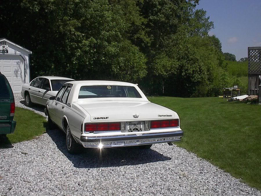 1991 Caprice in front (wife's car for now), with a supporting cast of a 1985 Buick LeSabre (my daily driver, I have a set of aluminum 1985 Grand National rims with yellow letter goodyears for it, but the wife won't be seen in public with those on the car:nono: ), 1989 Cadillac SDV (needs a tranny, but haven't gotten around to installing it yet, even though I have an excellent engine/tranny combo waiting for the past year and a half), and the barely visible 1991 Buick Park Avenue (was the wife's, now our son's).