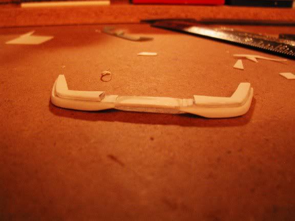 ^^^^ Cut the diffuser out fro styrene and insert into the bumper, please note that I built up the bumper extensions to the wheel well, and that the rounded part is not from my template, that is a seperate piece.