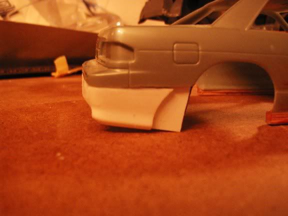 I want to scratch build a bodykit for my Tamiya Supra. I am not sure where to start though. I saw that S2000 thread and sort of picked up on that. I have not cut the front bumper off yet, but I have traced the bottom part. Now I am confused on making the rest of the bumper. I have an idea of what to do, but I am lost on how to make it have depth.
