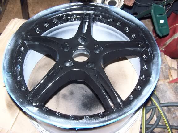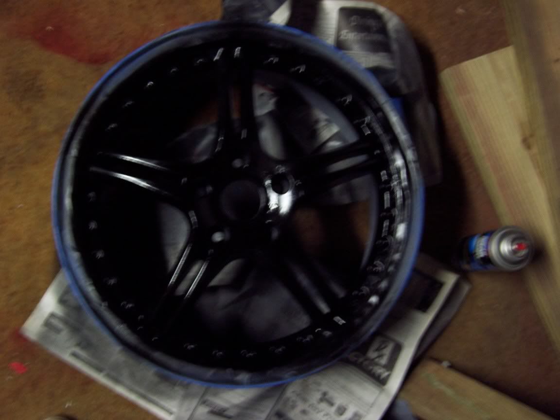 I still need to clear them and finish polishing up the lip and then I'll post the finished product on the car. I used dupli-color primer and black enamal spray paint and dulpli-color high gloss rim clear coat. What do you guys think?
