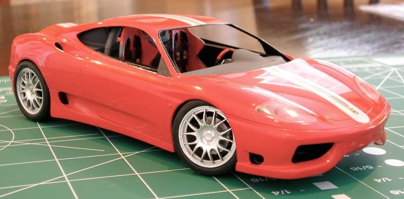 probably the last progress post for this model.. things are wrapping up. here are some pics of the racing stripes and interior with a 100% scratchbuilt fire extinguisher. hope you like the pics