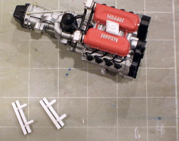 I started to make some fuel rails out of styrene. i kinda like them but they seem a bit too big.