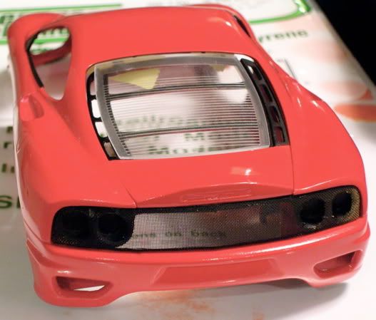 some more progress. i was contemplating taking out the plastic in the rear of the car and replacing it with some sort of mesh like a couple of other talented modelers have. I wasnt sure how it would turn out if i tried and i knew it would suck if i messed things up. i said, "$crew it" and cut off the plastic. i got some brass wire mesh from the local craft store and used the plastic as a mold/template. Here are the results of a couple solid hours of tedium. hope you like it as much as i do. came out decent IMO.