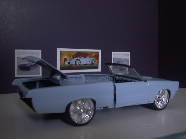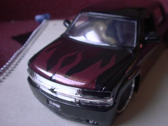 I repainted the GTO.. Yes from the brown.. wanted to make it more of a "g ride" so I painted it baby blue.. this is just after the paint.. still need to clear coat it.. and the silverado dually.. was just mesing around with some designs.. dont think it turned out that well..