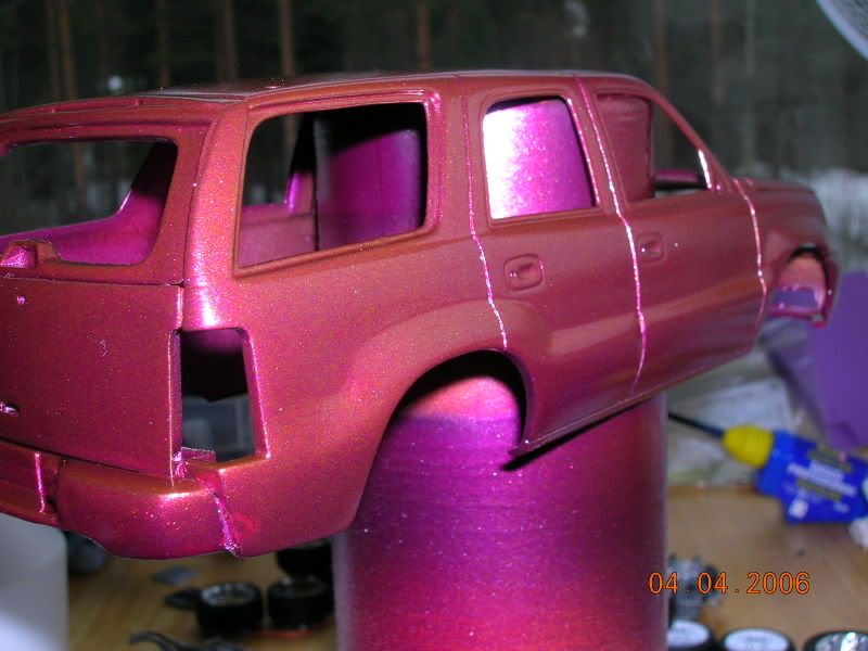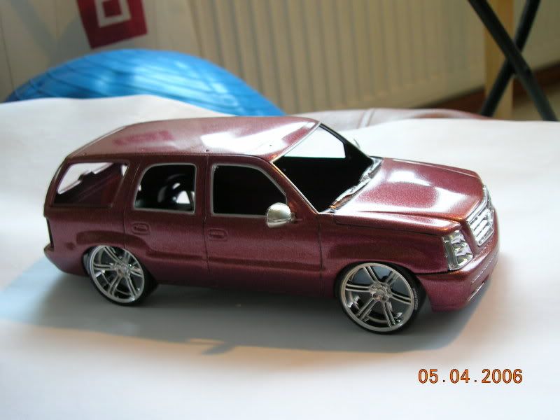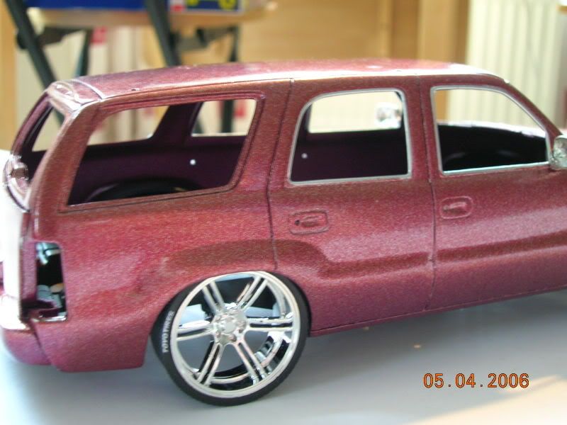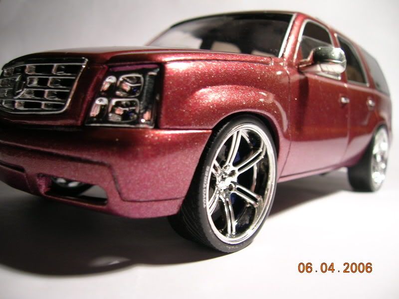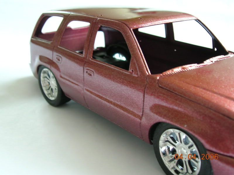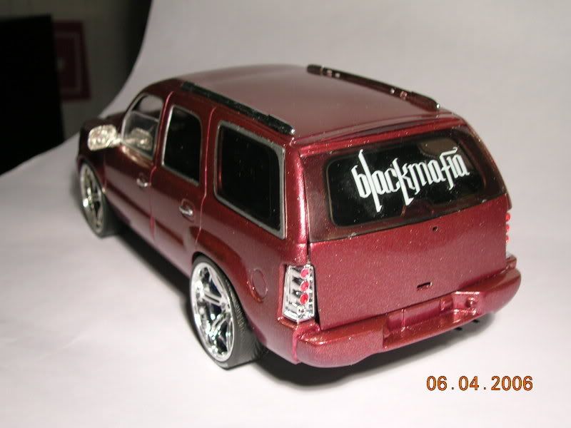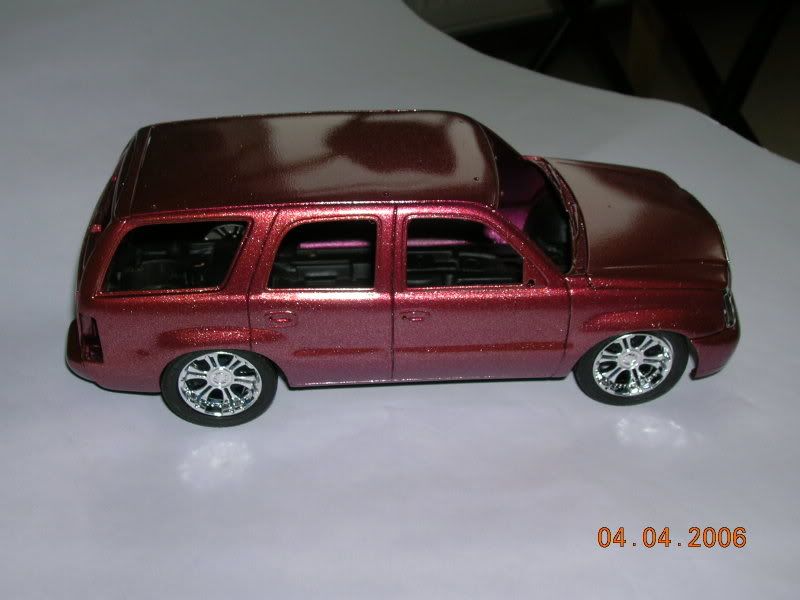 I'm mixed on this one. I think it's the size of the rims and these just don't seem like SUV rims to me... are they Jada import tuner rims? The paint and the trim work looks nice though... I guess I'll have to wait to see the finished product before making my decision.