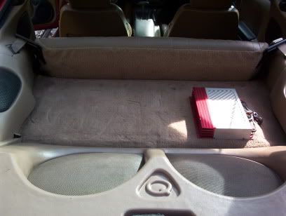 Amp was a bit weak for the subs, but on these cars, the subs funnel the sound forward anyway so you don't need a lot of power. That box cover is from Q-logic (crutchfield), the amp is a Rockford cheapie 300 watt, and the subs were Kickers at first then Rockford 12s. You could probably do a setup like that for under $800 if you used all new components and maybe less than $500 if you got some good used speakers and amps and just got the box surround plastic cover new. I take it youre leaning more toward keeping the car again :-p
