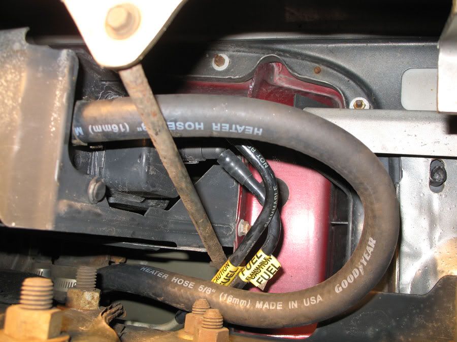 This hose is about 1" in diameter......seperate from the two other lines labeled as fuel lines.......