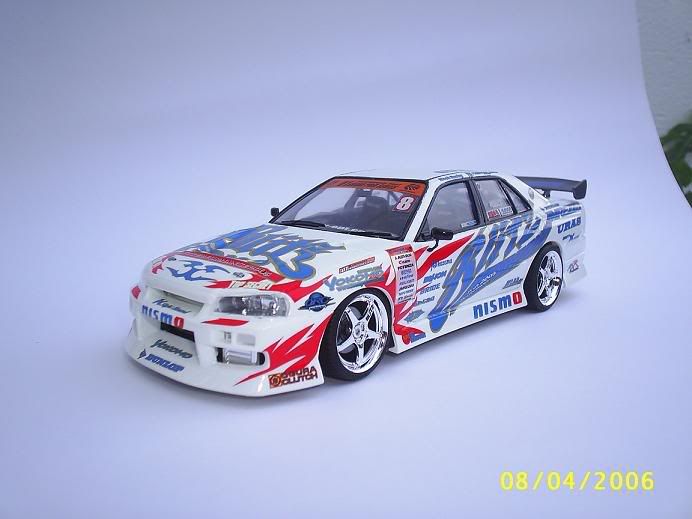 Just finished my Aoshima Blitz skyline. Built out of the box except for the carbon decaling on the rear spoiler. Kit went together rather nicely without much trouble. Decals were quite nice to use also. Any way heres the pics hope that you will like it.