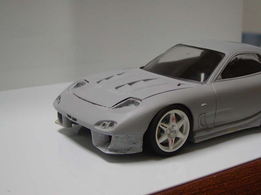 have sand the headlight section & redone the air inlet area(should look more proportional now) hood section is almost done up, less for a bit of sanding touch-up.
