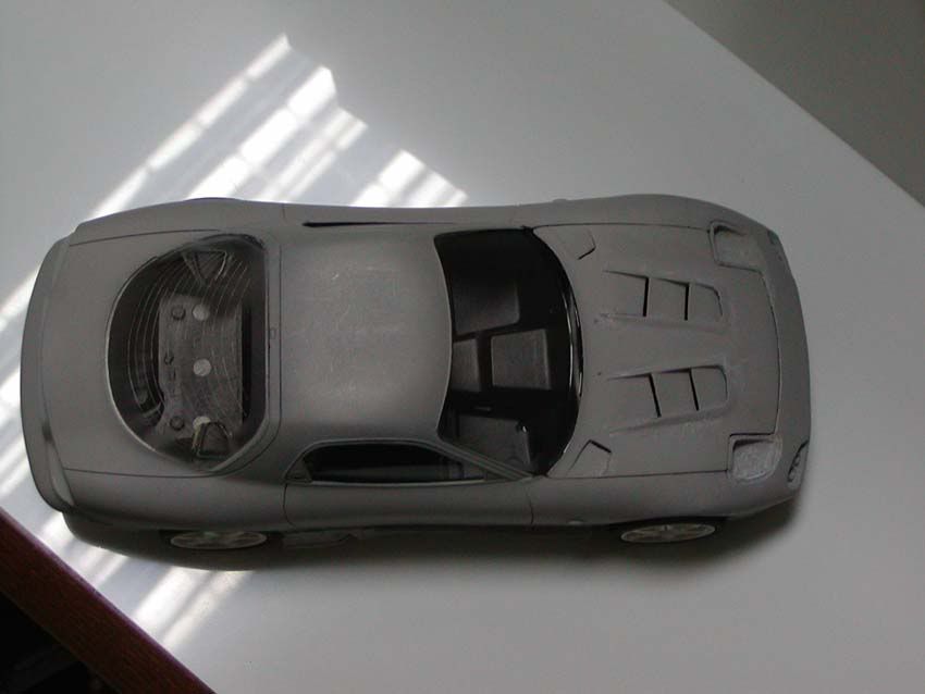 Have primed the body & done up the headlights. Realise that the surface, especially at area which are puttied and sanded are not as smooth as expected. Area are filled with pit holes. How am I going to make it as smooth as the rest of the body? being using tamiya basic putty as the top coat.