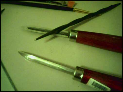 Here's a couple of tools I mainly use. Etching pen, scraper, and burnisher, of course some steel wool and sandpaper and brushes.