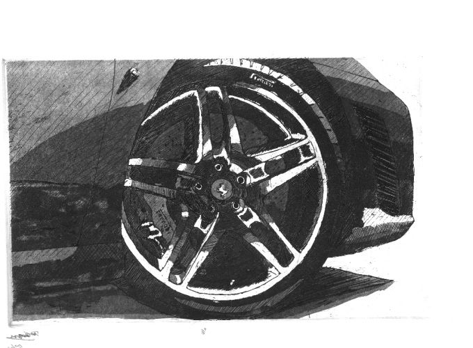 This ferrari wheel is a line etch done by dipping in acid five times for 5 minutes each, total of 25-30 minutes to put in acid only. The rest took like 1 week, including staying and sleeping in the room. :ugh3: