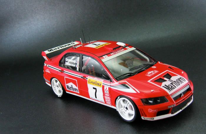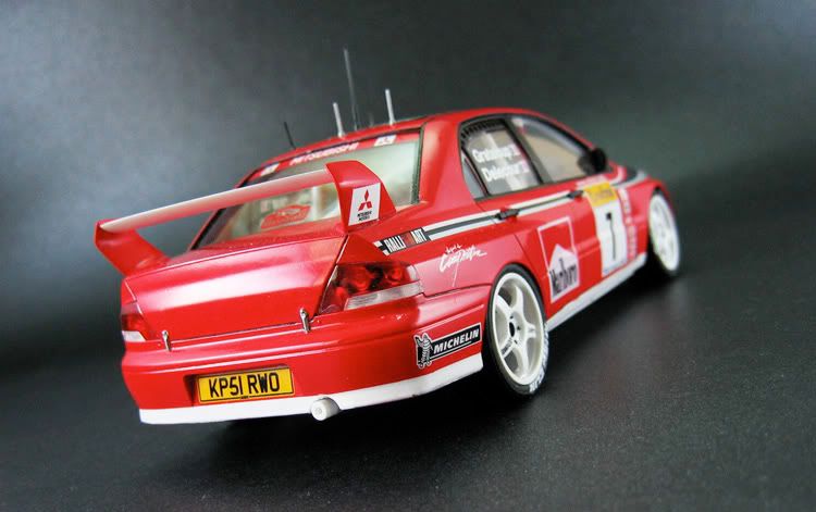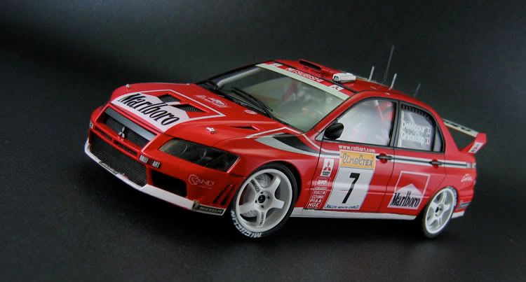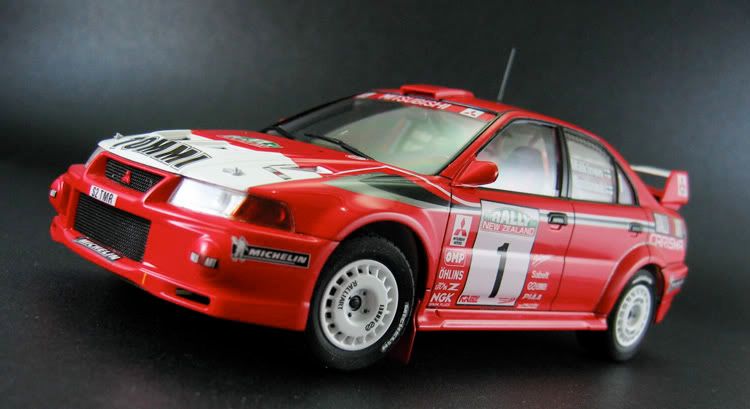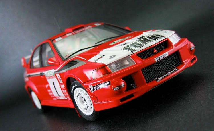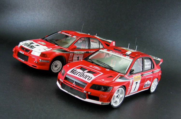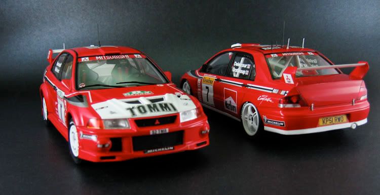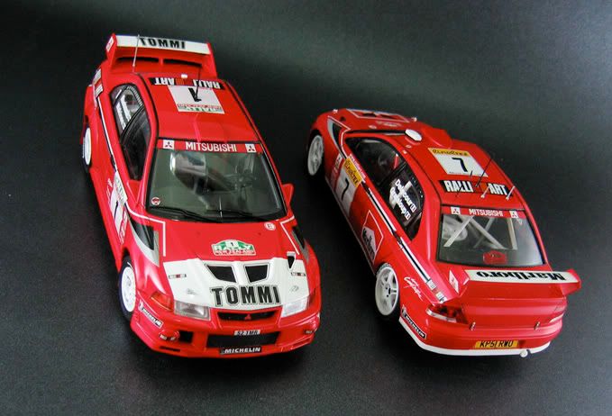 Very nice pair of Evo's you have there.Excellent pictures as well.Did you mask/paint the white/red areas on the bonnet etc or use the supplied decals? It's hard to tell the join looks so neat.