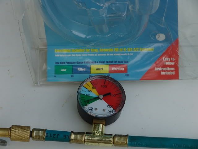 This is the hose and gauge I use. It came from Advance. According to the gauge, about 45 lbs. is the upper limit.