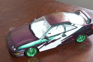 I hope you like them. I made this a couple of weeks ago. I used House of Kolor Kameleon Kolor's green to purple. I used Tamiya clear green for the wheels. I built it stock out of the Revell box.