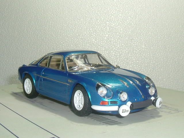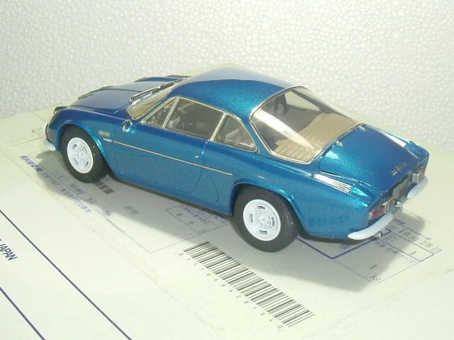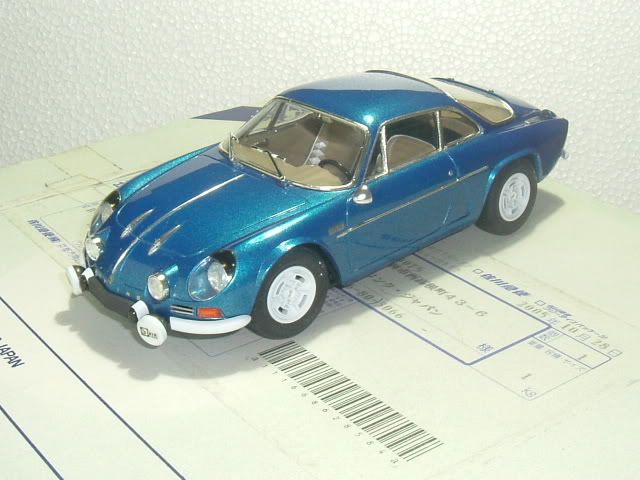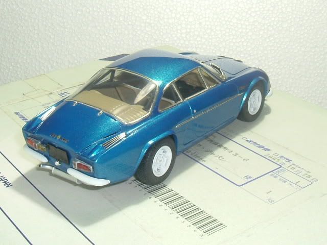This is my recently completed Tamiya 1/24 Alpine A110 1600SC. The paint is Gunze metallic blue, rims and bumpers are white and interiors are tan with white linings. Chrome lining is using Bare Metal Foils.