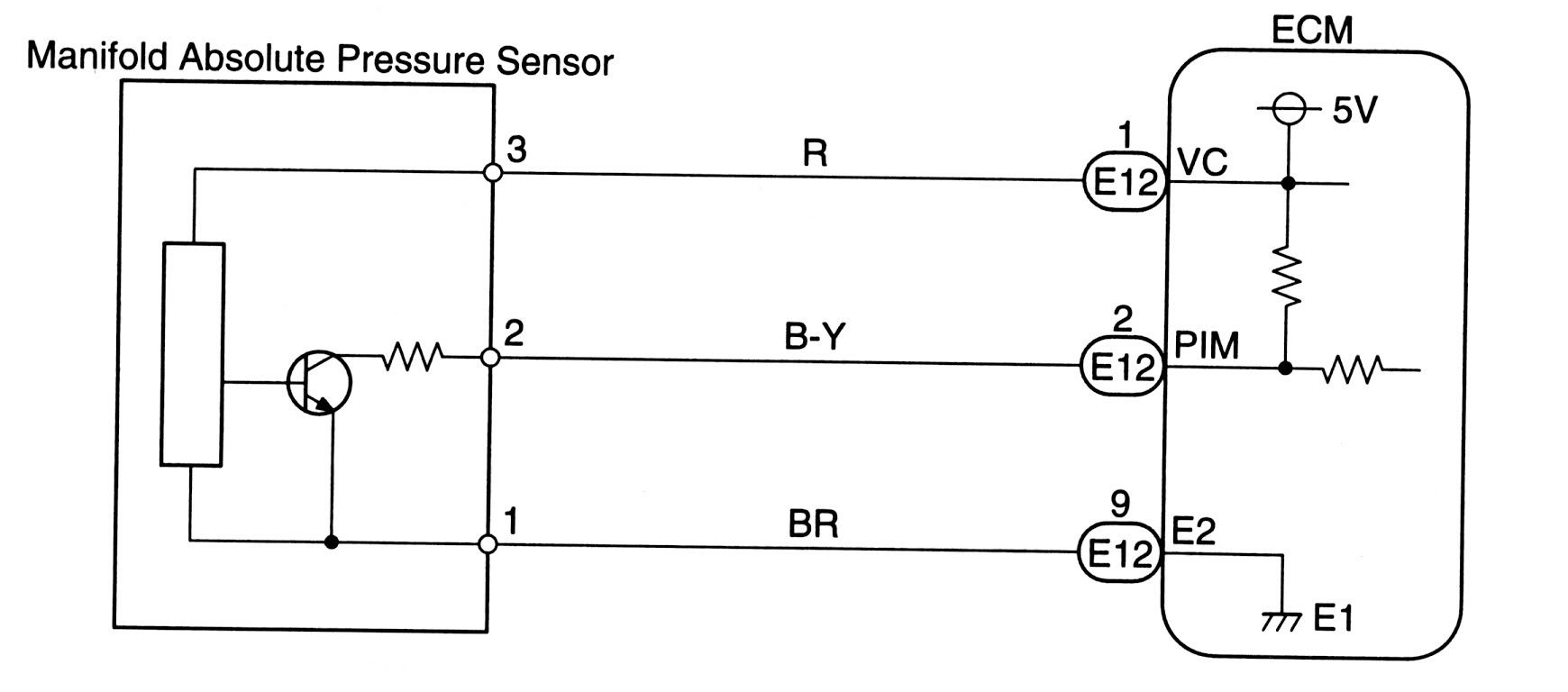 But wait, looking at the diagram you posted (on the ECM side) it appears MAP terminals (3) and (2) are connected by a resistor symbol and both are fed by a 5-volt source with T (1) being the ground. In other words it appears just the opposite of your explanation, am I reading the schematic wrong?